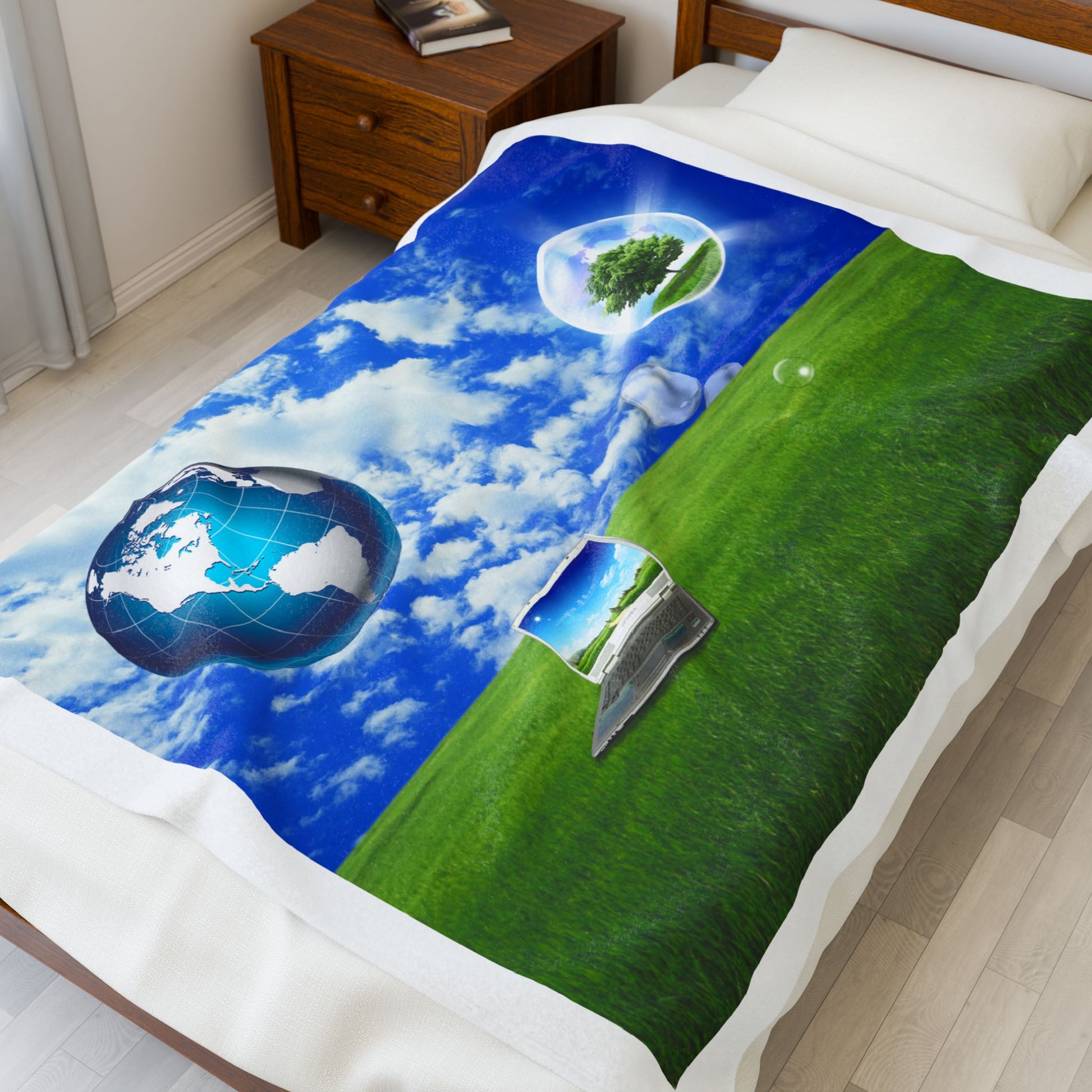 This Frutiger Aero blanket's soft texture and nostalgic art will help you have Frutiger Aero dreams!